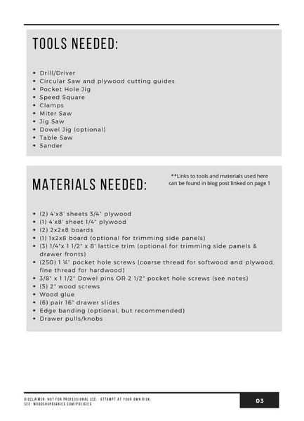 Tools, and materials lists can be found in the plan preview images and in the blog post linked above.