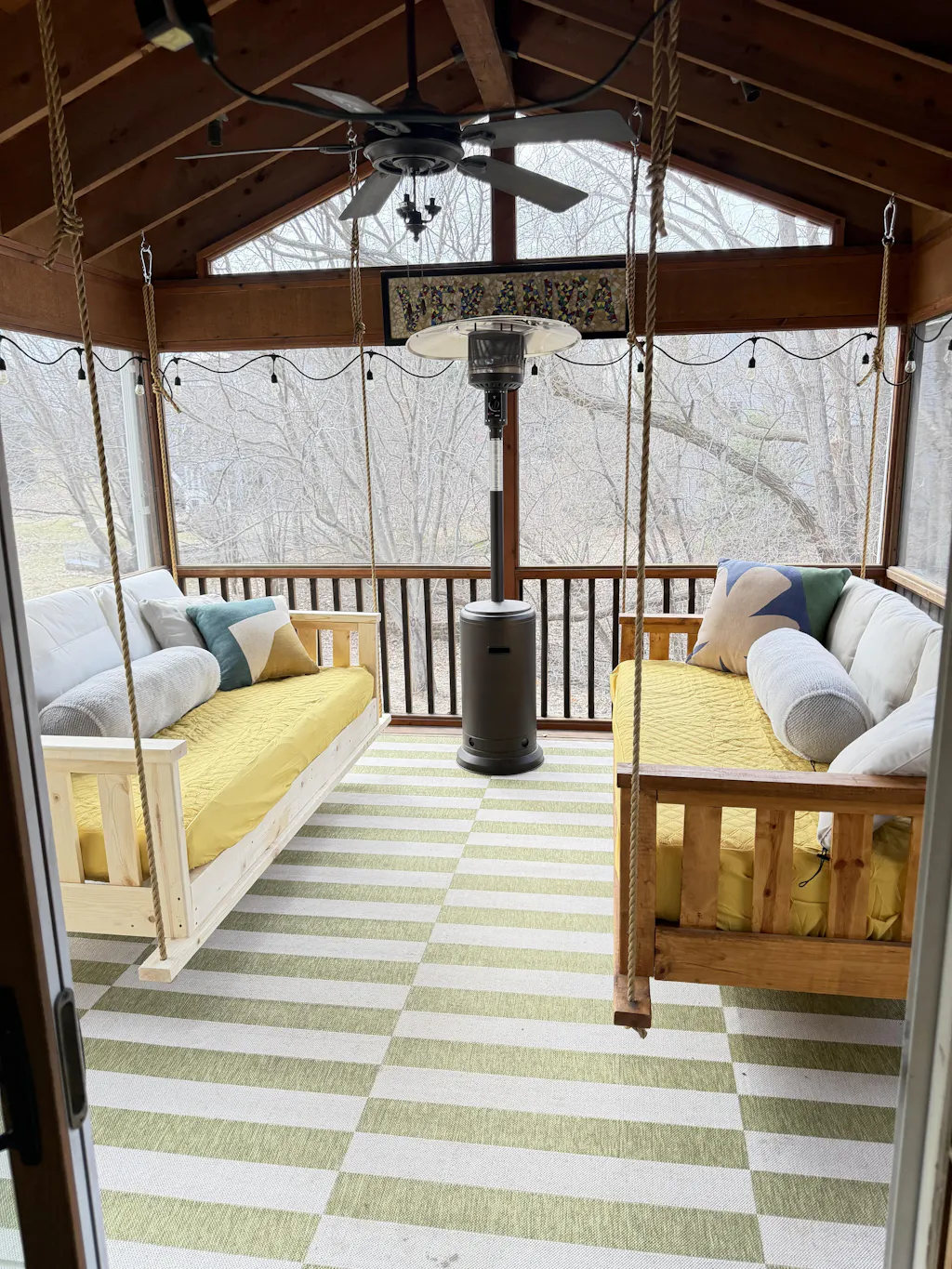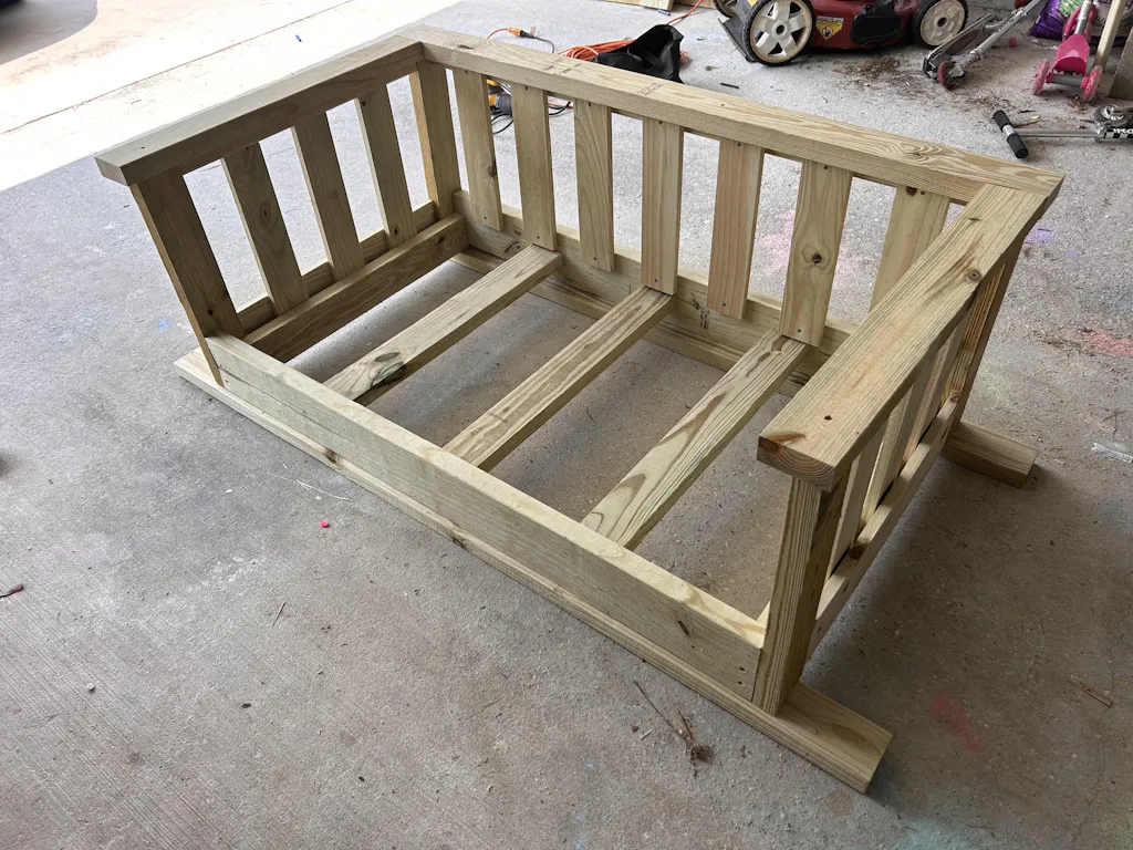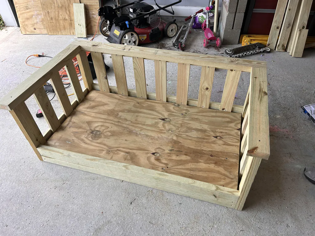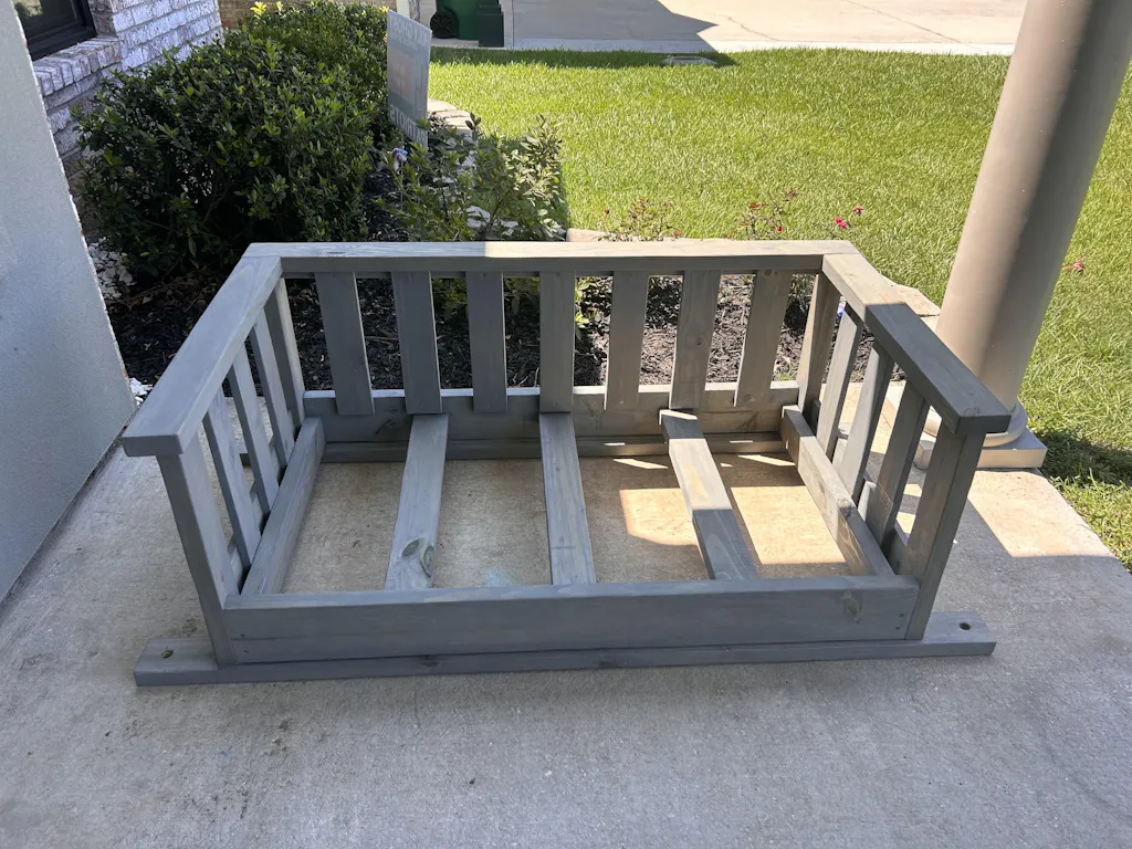 This printable PDF building plan shows you the step by step process to build this DIY porch swing bed.
