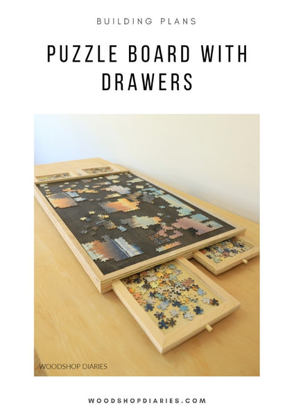 Ready to make puzzling (or game night!) a little more convenient? All you need is a plan! This printable PDF building plan contains the detailed cut list, diagrams, and step by step instructions to build your own DIY puzzle board with storage drawers! PLUS, it rotates!