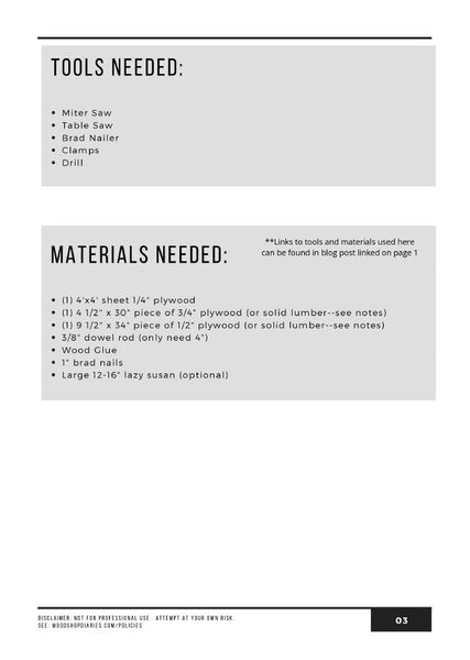 Tools & materials lists and overall dimensions can be found in the plan preview images and in the blog post linked above.